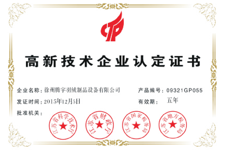 徐州市羽絨制品設(shè)備工程技術(shù)研究中心